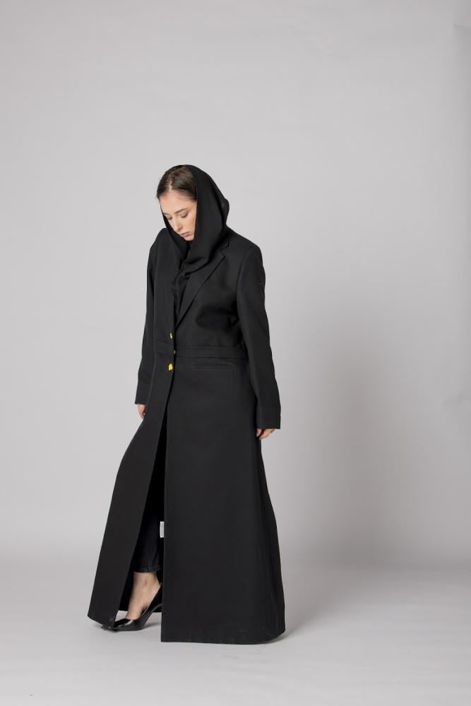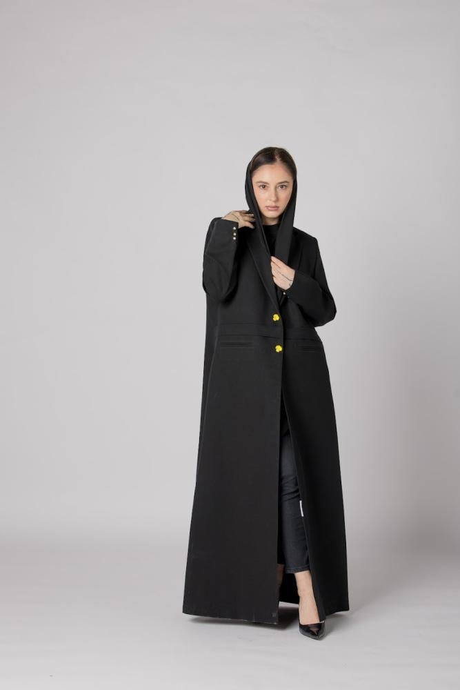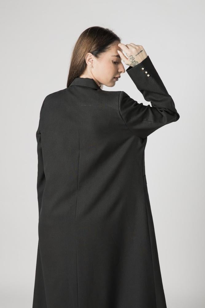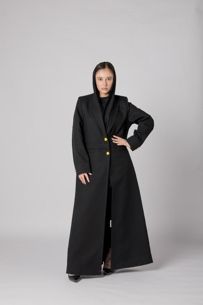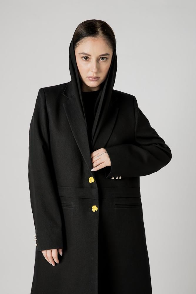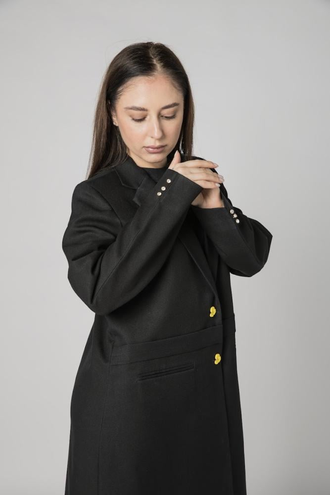 بليزر من قماش الكتان مبطن مع أزرار على شكل وردة