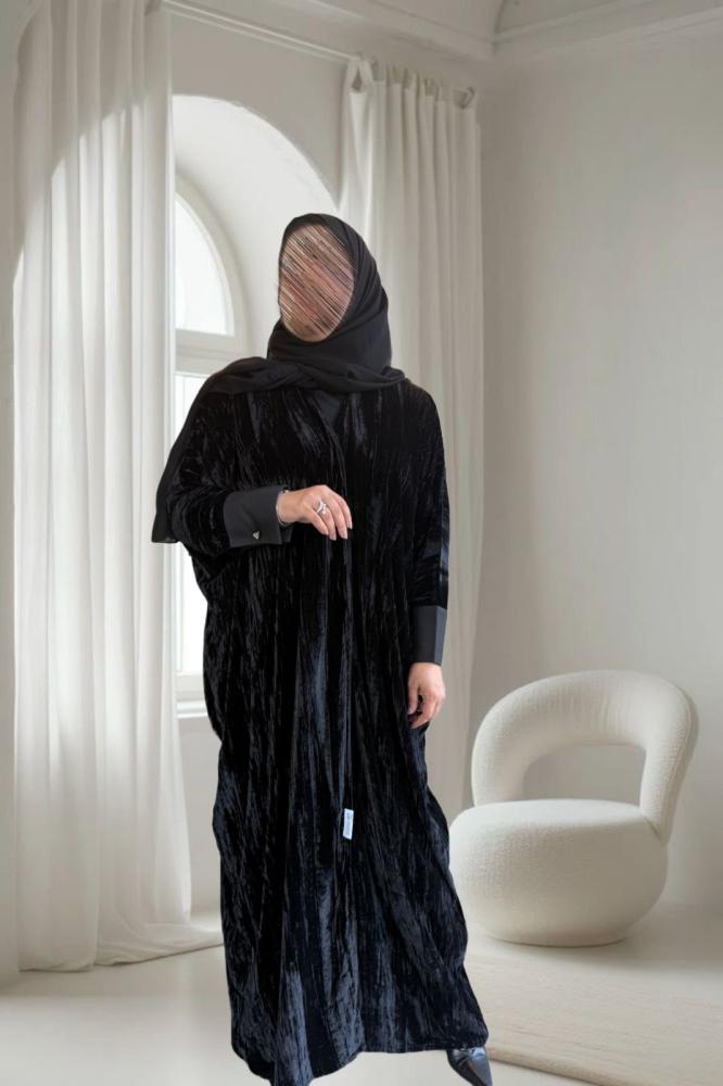 عباية من المخمل المكسر الأسود بأزرار أكمام قصة بشت